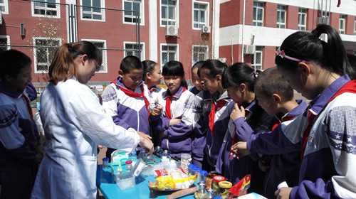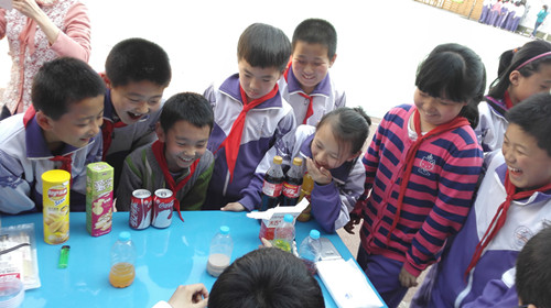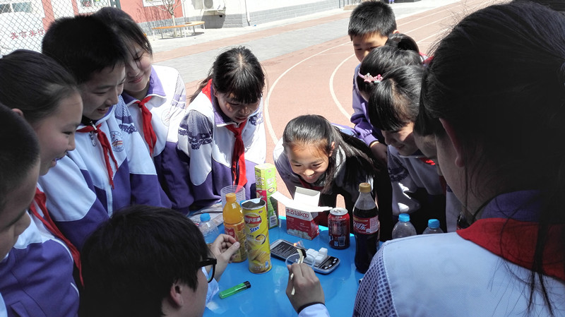 校園食育展覽,是2015北京市教委創新人才培養項目之—,“由食物認識自我,探索世界”。本次展覽主要分為參觀食安知識海報和參觀食安快檢實驗兩部分,我們準備的5個實驗:亞硝酸鹽超標食品檢測、經二氧化硫漂白食品的檢測、地溝油和安全食用油的鑒別、奶茶和橙汁的勾兌制作以及可樂含糖量和薯片含油量實驗,深受小學生們的喜愛。
