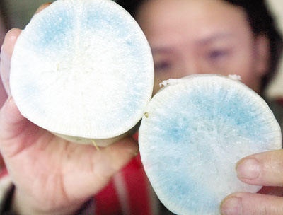 網(wǎng)上流傳更多的說法是:藍(lán)心蘿卜是商家為了讓蘿卜能長期存放,特意打的保鮮劑。藍(lán)心蘿卜有毒性,對人體有害。對于這種說法,范志紅表示,這幾乎沒有可能性。一方面由于人工染色情況下,人工色素顏色比較穩(wěn)定,一般遇到酸堿都不會變色;另一方面是由于蘿卜本身的價格很便宜,而添加保鮮劑需要大量的人工成本,一天花幾百塊錢的人工成本去加保鮮劑,商家“犯不上”。