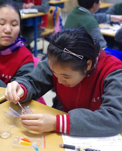 參加課程的中學生在認真做實驗