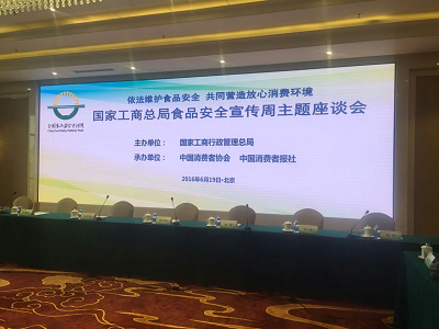 此次國家工商總局食品安全宣傳周主題座談會(huì)于2016年6月19日在中國職工之家拉開帷幕,出席會(huì)議的領(lǐng)導(dǎo)有國家工商總局副局長馬正其、國家衛(wèi)生計(jì)生委食品司調(diào)研員史根生、國家質(zhì)檢總局產(chǎn)品質(zhì)量監(jiān)督司處長彭軍等。