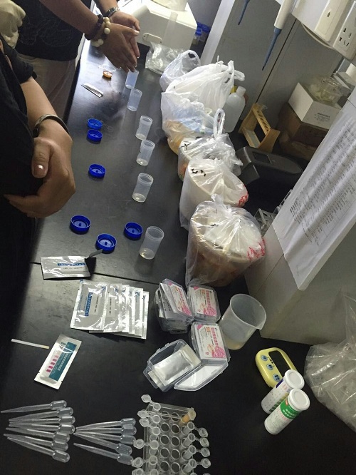 首先是麻辣燙中罌粟殼檢測:本次實驗6份樣品中,通過檢測4份出現(xiàn)兩道紅線,證明不含嗎啡,未添加罌粟殼。另外兩個樣品因油脂含量過大,影響了檢測效果,試紙未正常顯示結(jié)果,需重新檢測。