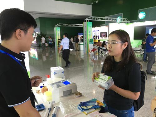 外國友人現場咨詢智云達食品安全快速檢測產品