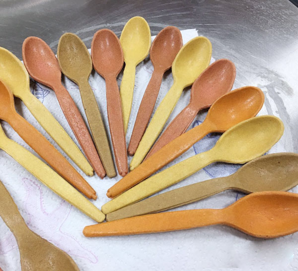 這些勺子由面粉、米粉、小米粉、蛋白等調和而成,不含人工添加劑。目前,已通過美國食品藥品管理局測試,并取得了歐盟的質量標準認證。