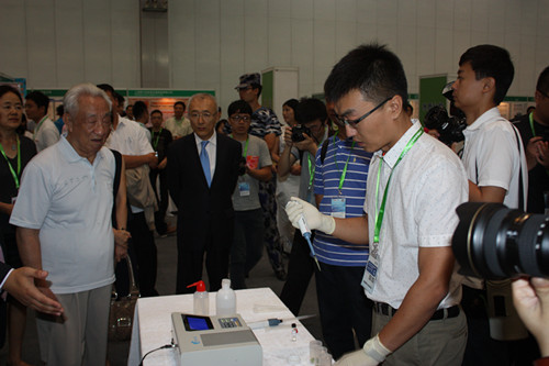 當鄒家華首長來到展會的現(xiàn)場操作區(qū)時,智云達食品安全檢測工程師于勇的實驗吸引領導駐足觀看,隨后鄒家華首長對現(xiàn)場進行的農(nóng)藥殘留實驗進行了詳細的詢問,了解了食品快檢的工作原理及作用,提出了相關問題,并對目前的工作做出了指導。