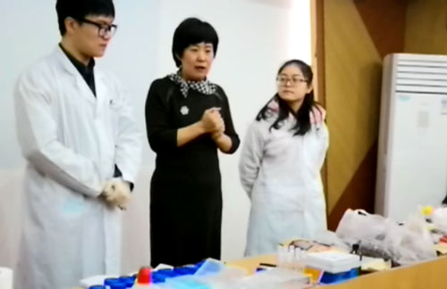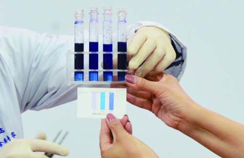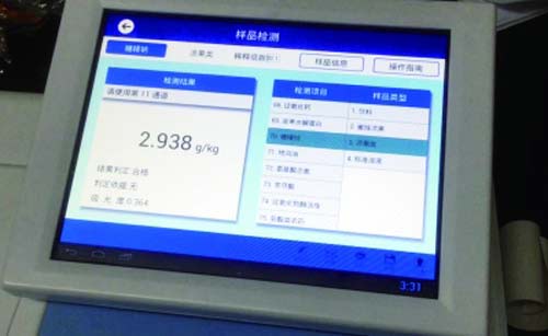 北京智云達技術(shù)工程師楊老師和王老師首先將樣品粉碎,再通過使用北京智云達自主研發(fā)生產(chǎn)的快速檢測產(chǎn)品:明礬速測盒、ZYD-FI,對樣品溶液中的糖精鈉和明礬含量進行檢測。