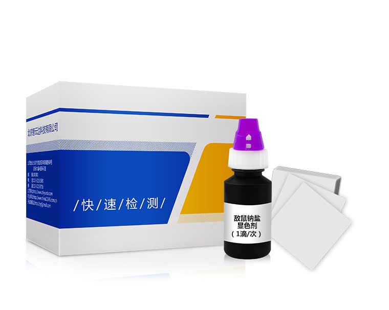 敵鼠鈉鹽又名敵鼠,化學名為 2- 二苯基乙酰基 -1,3- 茚二酮,可與三氯化鐵反應出現磚紅色。檢出限 5μg ,在取樣量 0.05 mL 的情況下最低檢出濃度 100μg/mL,加大滴入量后,更低濃度的敵鼠鈉鹽將會檢測出來。