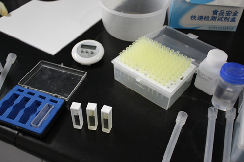 實驗地點:北京智云達科技有限公司食品安全快速監測網消費者體驗中心。這次實驗用了兩種儀器試劑進行檢測,分別由技術工程師于勇和楊益平操作。