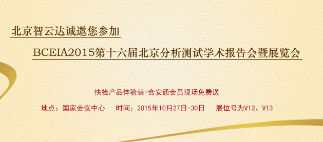 第十六屆北京分析測(cè)試學(xué)術(shù)報(bào)告會(huì)暨展覽會(huì)(BCEIA 2015)于2015年10月27日-30日在國(guó)家會(huì)議中心如期舉行。北京智云達(dá)科技有限公司受邀參展,展位號(hào)為:V12、V13,智云達(dá)誠(chéng)邀您蒞臨參展。