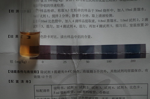 對比標準色階卡,讀出樣品中鋁的含量。結(jié)果顯示鋁合格,均符合國家標準。