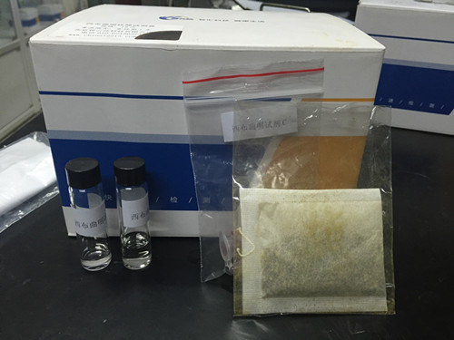 取0.5 g內(nèi)容物取一支試劑A,將所取樣品加入管中,蓋緊蓋子,充分震蕩混勻1 min,靜置2~3 min,使上層液澄清。用0.5mL吸管吸取試劑A瓶中上層溶液約一半的量至試劑B瓶中;